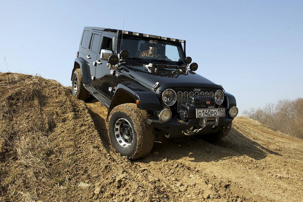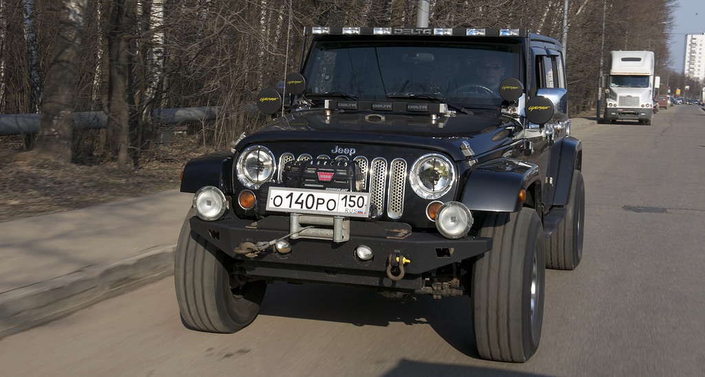Рев, рык, смачные утробные звуки и послушно прописывающая поворот машина. Вы когда-нибудь хулиганили так на брутальном внедорожнике? Вот что я вам скажу: все автомобили, относящиеся к классу покорителей оффроуда, славятся умением ездить медленно. И чем медленнее — тем лучше. Наш Jeep Wrangler Sahara умеет это делать не хуже других. Но попробуйте найти среди этих тихоходов хоть один, который может передвигаться еще и быстро, при этом отлично управляться и дарить владельцу весь спектр возможных удовольствий. Не найдете. Просто он такой один — продукт глубокого и вдумчивого кастомайзинга.