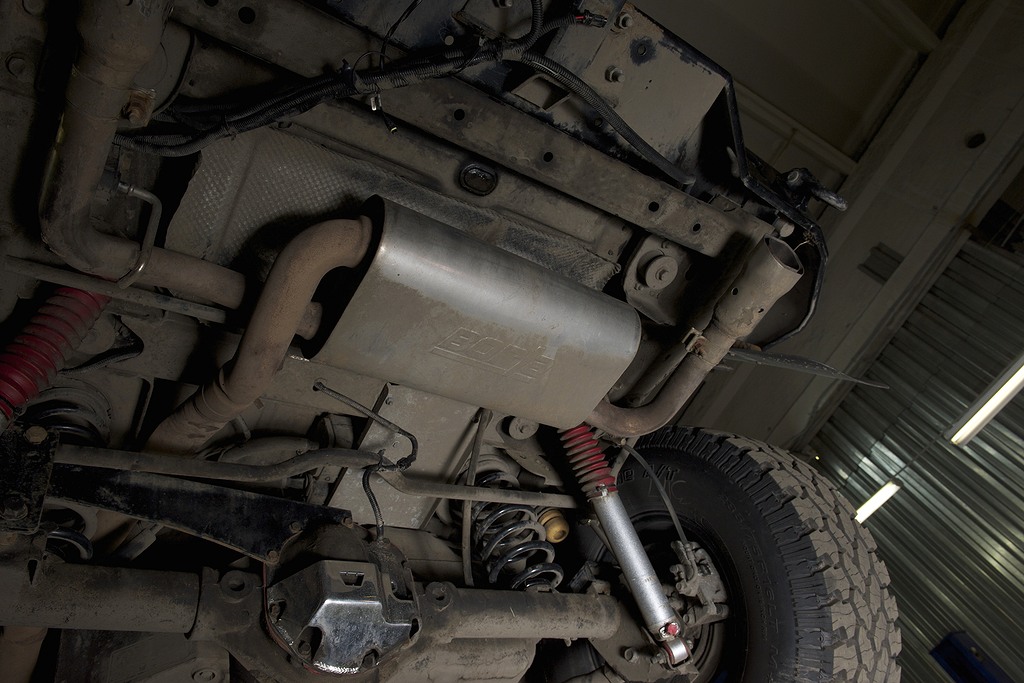 От утилитарного внедорожника на огромных колесах такой динамики просто не ожидаешь. Классического «удара подголовником по затылку», характерного для американских muscle cars, нет, но есть удивительно напористый ровный разгон. Ускорение на двигателе с механическим нагнетателем выглядит уверенным и очень спокойным, без «подхватов» и «турбо-ям». Сила, с которой машина устремляется вперед — просто пьянящая. А когда в дело вступают голоса глушителей Borla, сотрясающих окрестности низкочастотным рыком, смачно сдобренным присвистом байпасного клапана наддува… Эх, за эти фантастические ощущения, честное слово, стоит платить. Реакции на управляющие действия и отзывчивость рулевого управления, естественно, пострадали от шин слишком высокого профиля. Но ни какого-то особого дискомфорта, ни проявления всяческих чрезмерных раскачек или таких уж серьезных запаздываний не замечено. Все осталось в пределах нормы — заслуга подвески.