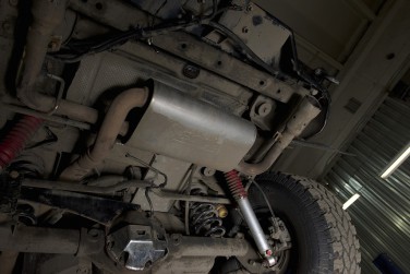 Боди-лифт (поднятие кузова над рамой) был отвергнут сразу, а прицел взят на отлично зарекомендовавшие себя комплекты внедорожной подвески фирмы Skyjacker. В итоге на машину установлен наиболее полный «кит» Value Flex, включающий в себя пружины, регулируемые рычаги на шаровых соединениях, систему переноса и усиления тяг Панара, и еще несколько кронштейнов, решающих компоновочные вопросы с мешающими лифту элементами. Единственное, что в комплекте было заменено, — амортизаторы. С пружинами Skyjacker Soft Ride великолепно «уживаются» амортизаторы Rancho 9000XL Silver Series с увеличенным ходом и диаметром штока. Подвеска получилась не просто внедорожная, но и длинноходная. Единственным ограничением оставались стабилизаторы поперечной устойчивости. Мелочиться хозяин не стал и здесь. Просто поставить «дисконнекты» — банально и неспортивно (размыкаемые стойки были установлены, но как-то сразу не понравились). На обычный Wrangler Sahara была водружена система размыкаемого стабилизатора MOPAR Performance Rubicon Edition Sway Bar Disconnect от Wrangler Rubicon JK! После этого само понятие «лезть в грязную колесную арку, чтобы отключить стабилизатор» превратилось в «нажать кнопку». Кнопка, кстати, тоже была заказана «рубиконовская» и соответствующим образом «прошита» в электронный «мозг» автомобиля. Все бы хорошо, да меры по повышению проходимости показались хозяину недостаточными. Как ни улучшай подвеску, по нашим «просторам» без блокировок никуда. Поэтому в мостах вскоре «поселились» электромагнитные блокировки межколесных дифференциалов Eaton Performance E-Locker, что и завершило картину. Более полного комплекса работ по доводке автомобиля и желать-то странно. Осталось только понять, что делать дальше…
