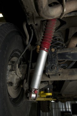 Пружины SoftRide упруго отрабатывали неровности, сохраняя в машине достаточный комфорт, амортизаторы RanchoXL прекрасно гасили колебания огромных неподрессоренных масс и машина шла, что называется, как по ровному. Но не это удивило больше всего. После отключения переднего стабилизатора комфорт сильно возрос, а серьезных потерь в управляемости (на внедорожных скоростях, естественно) замечено не было. Мы приготовили машине несколько испытаний, на которых, несмотря на их кажущуюся простоту, «обломал зубы» не один внедорожник.