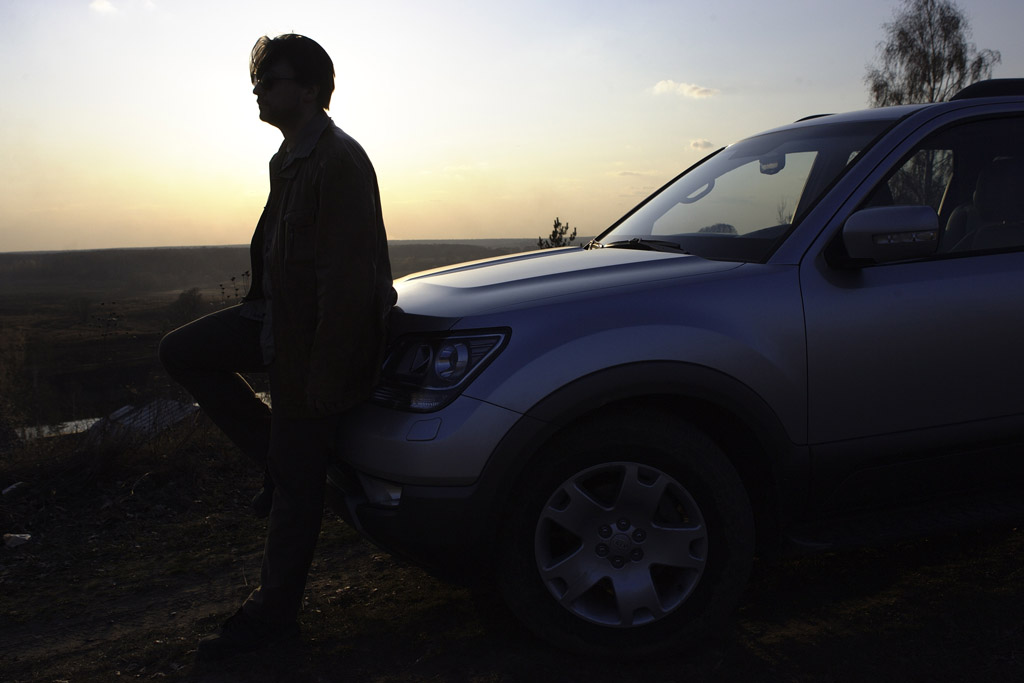 Благополучно преодолев лесной участок (он оказался очень коротким и лишь слегка разъезженным) мы начали спуск к берегу. Честно говоря, мне снова стало страшновато: колея оказалась довольно глубокой. Клиренс автомобиля регулируется только сзади, поэтому отчетливо замаячила перспектива «усадить на брюхо» нашего сверкающего красавца. Забрались одним колесом на склон, другое пустили между колей, призвали на помощь волшебную систему спуска с холма — и успешно переместили автомобиль к нижней точке берега.